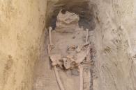 V hrobě se rovněž nacházely kosti válečníka, jemuž šavle pravděpodobně patřila. Jeho paže a spodní část těla byly uspořádány, jak mají být v anatomickém pořadí, ale hlavu, hrudník a břicho mrtvého zřejmě poškodili vykradači hrobů.