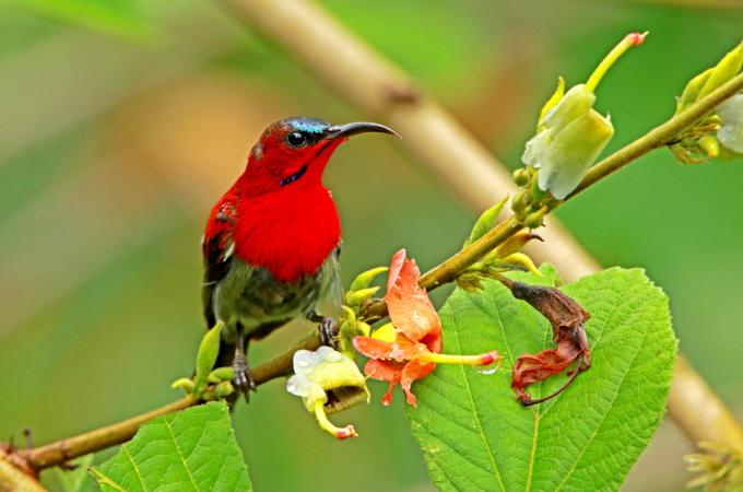 „Tuk … tuk … tuk …“ je právě takovým zvukem, jenž zní v lesích od Indie, přes jihovýchodní Asii až po Filipíny. Jak často ale tento charakteristický zvuk uslyšíte, tak málo uvidíte jeho původce. Po řadě pokusů, kdy si skoro vykroutíte hlavu při zírání do nepřehledných korun stromů, se vám snad nakonec poštěstí „pachatele“ zahlédnout: je to vousák zvučnohlasý (Megalaima haemacephala).