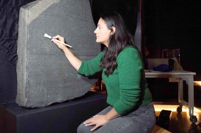 Francouzští vědci sice ihned zhotovili kopie textu vyrytého na kamenné stéle, ovšem originálu se po Napoleonově kapitulaci zmocnili vítězní Britové: V únoru 1802 přepravili artefakt do Portsmouthu, odkud se později přesunul do Britského muzea v Londýně a v jeho expozicích je k vidění dodnes. Paradoxem zůstává, že podle platného mezinárodního práva na něj již Egypťané nemají nárok, neboť předměty nalezené v té době patří současným majitelům.