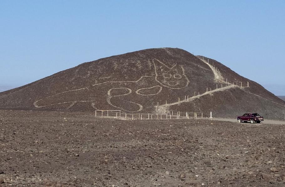 Archeologové na peruánské planině Nazca odkryli obrazec kočky