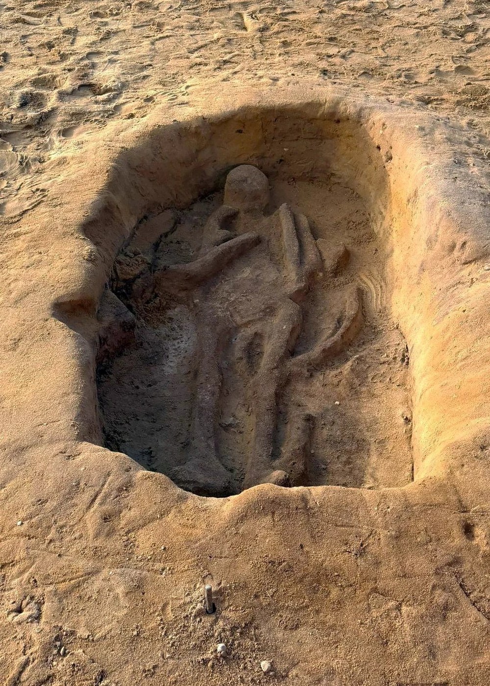 Půda v oblasti Suffolku je silně kyselá, což znamená, že lidské i zvířecí kosti se v ní obvykle zcela rozloží. Ve dvou hrobech se však zachovalo něco výjimečného: obrysy těl obtisknuté v písku, které připomínají sochy nebo stíny mrtvých. V jednom hrobě se rýsoval tvar koně, v druhém obrys dvou lidí. Přestože z kostí nic nezbylo, hroby obsahovaly bohatou výbavu – a ta o pohřbených vypovídá víc než samotná těla.