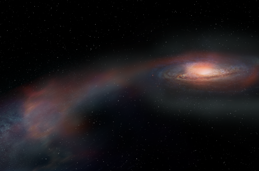Astronomická pozorování odhalila, že se od galaxie, která v minulosti splynula s jinou galaxií, táhne obrovský slapový ohon. Jeho hmota odpovídá asi 10 miliardám Sluncí. Ukázalo se, že tento ohon obsahuje asi polovinu veškerého chladného plynu obou splynulých galaxií, z něhož by mohly vznikat nové hvězdy.