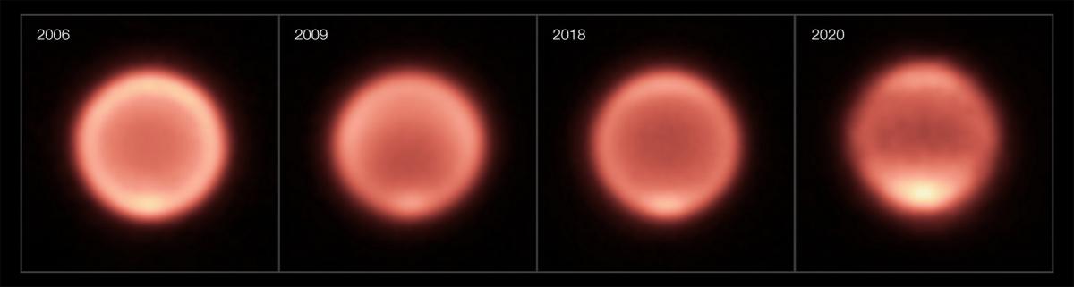 V posledních letech – mezi roky 2018 a 2020 – však astronomy překvapilo dramatické oteplení jižního pólu planety, kdy teplota vzrostla o 11 °C. A i když teplý polární vír na Neptunu je znám po mnoho let, takto rychlé oteplení dosud nebylo na planetě pozorováno.