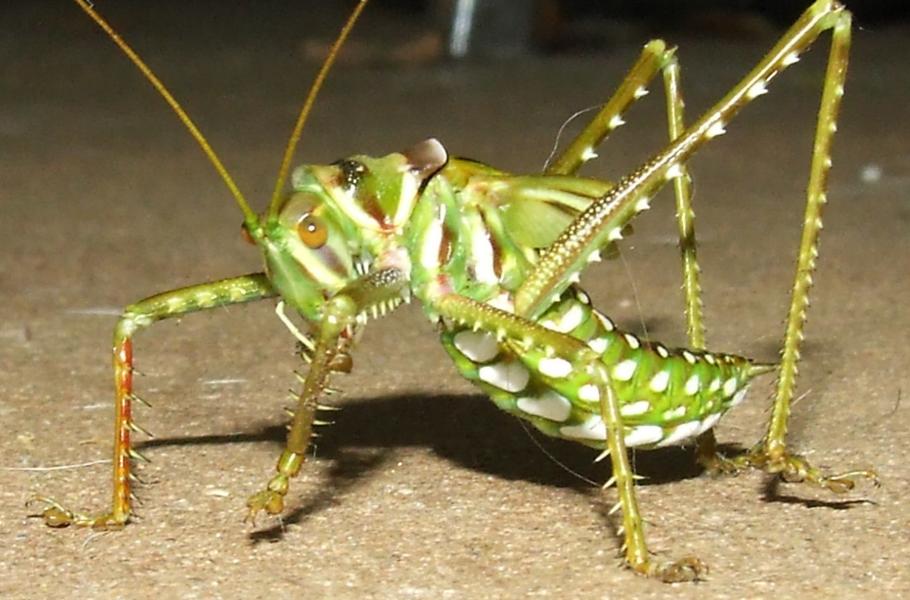 Dravá australská kobylka Chlorobalius leucoviridis dokáže napodobit zvuky zhruba dvacítky cikád. (foto: Flickr, Bill & Mark Bell, CC BY-NC-SA 2.0)