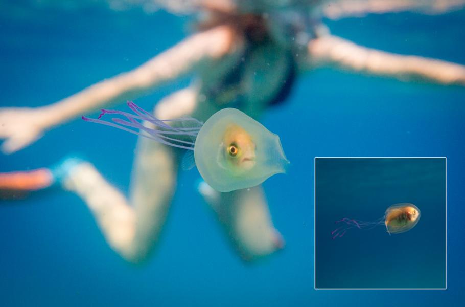 Ryba vpluje do medúzy a… To co zní jako začátek vtipu, je popis scény, kterou se podařilo během potápění zachytit australskému fotografovi Timu Samuelovi. Jak se nešťastná rybka do útrob žahavce dostala není jasné. Podle fotografa, který scénu pozoroval přibližně půlhodinu, to ale vypadalo, že hybnou silou tohoto bizarního podvodního dvojspřeží byla spíše uvězněná rybka.