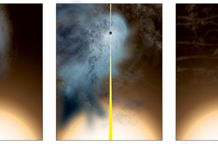 Fascinovaně pozorovali roztrhané pozůstatky galaxie, která před časem prošla skrz větší galaxii. Z této menší galaxie zůstala v podstatě jenom supermasivní černá díra, která se vzdaluje od větší galaxie rychlostí větší než 3 200 kilometrů za sekundu.