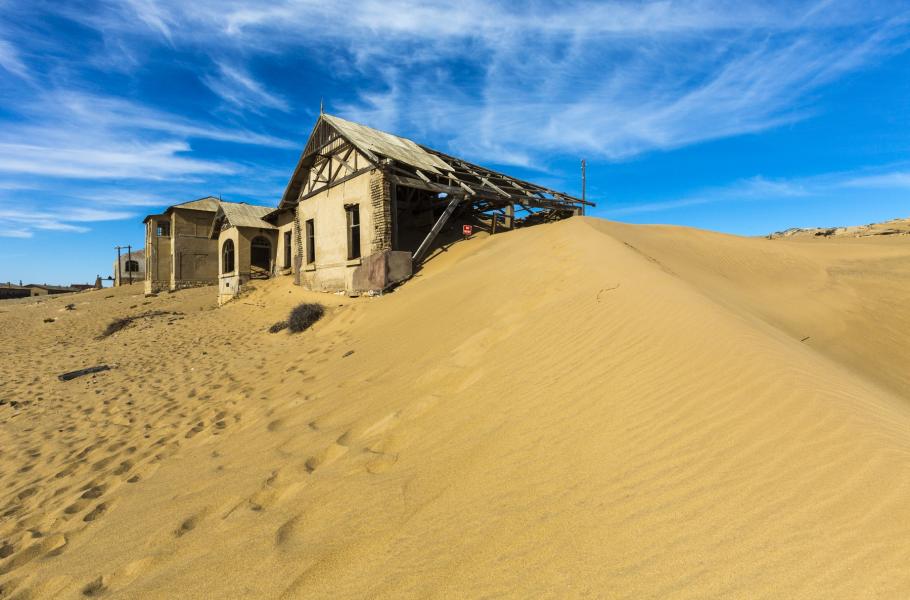 Písek v obýváku a dům, ze kterého vykukuje pouze střecha. To není záběr z katastrofického filmu, ale realita v bývalém těžebním městečku Kolmanskop v Namibii. Jeho počátek spadá do roku 1908, kdy našel zaměstnanec německé železnice Zacharias Lewala uprostřed pouště diamant.