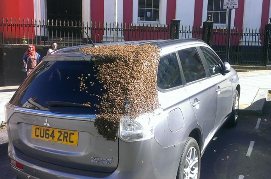 Carol Howarthová si jen na malou chvíli odskočila nakoupit do města Haverfordwest v západním Walesu; když se však vrátila ke svému autu, nalezla jej „pokryté“ dvacetitisícovým rojem včel.