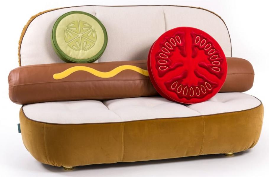 Italské designérské studio Selleti, ve spolupráci s belgickým Studio Job, připravilo pro blížící se pařížskou výstavu nábytku opravdovou lahůdku. Jejich nová kolekce inspirovaná rychlým občerstvením představuje pohovku ve tvaru hotdogu, doplněnou křeslem připomínající hamburger.