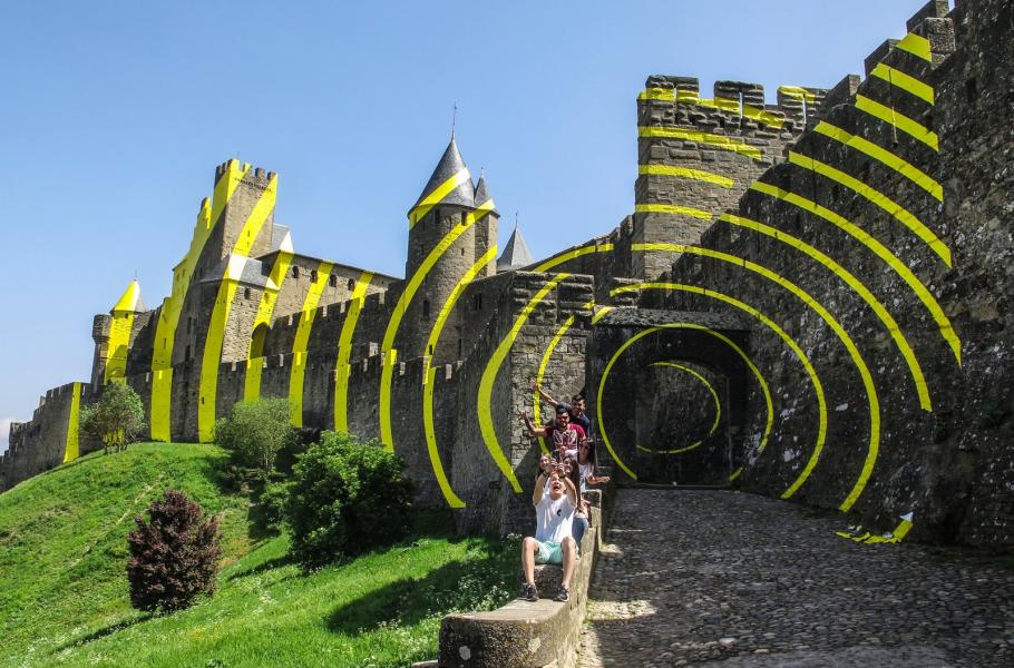 Při příležitosti dvacátého výročí zapsání na seznam světového dědictví UNESCO se francouzský hrad Carcassonne „oblékl“ do moderního umění: Švýcarský výtvarník Felice Varini jej polepil jasně žlutou hliníkovou fólií, která při pohledu ze správného úhlu vytváří soustředné kruhy. Instalace by měla zůstat na místě do září.