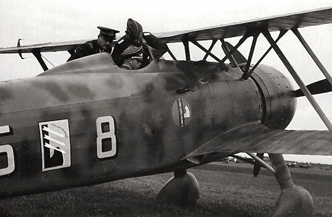 „Protože jsem o pár set metrů níž, mám čas pozorovat, jak se ze stejného směru jako bombardéry přibližuje velmi početná skupina dalších protivníků. Odhadem je jich více než nás, ale jsou to – dvouplošníky! Nikdy jsem neměl tušení, že by se nepřítel odhodlal přijít nad Anglii s dvouplošníky. Teprve na letišti jsem si ověřil, že to byly stíhačky Fiat CR.42 Falco. Měly doprovázet bombardéry, ale špatnou koordinací akce se zřejmě zpozdily…“