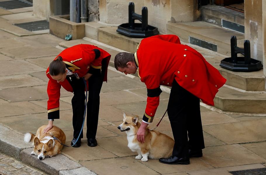 Královna v době svého úmrtí vlastnila dva corgie, kteří se dokonce svým způsobem zúčastnili jejího pohřbu. Zaměstnanci hradu Windsor, kde se konal smuteční obřad, na nádvoří přivedli psy ve chvíli, kdy na místo přijel pohřební vůz s královninou rakví a procesí s čestnými strážemi. Nyní se o ně postará princ Andrew a jeho bývalá manželka Sarah Fergusonová. Právě Andrew a jeho dcery, princezny Eugenie a Beatrice, dva nejmladší psy královně loni darovali, aby jí pomohli překlenout těžké období po smrti manžela, prince Philipa.