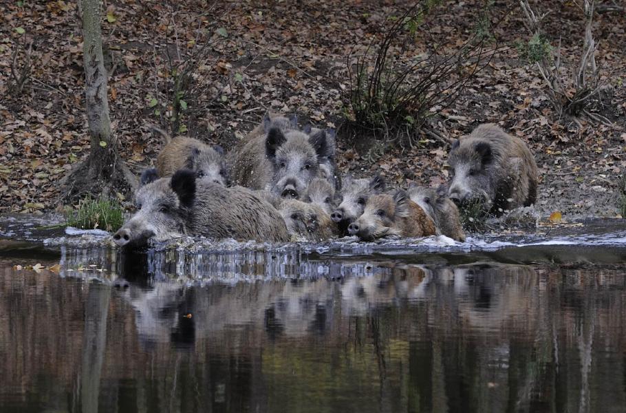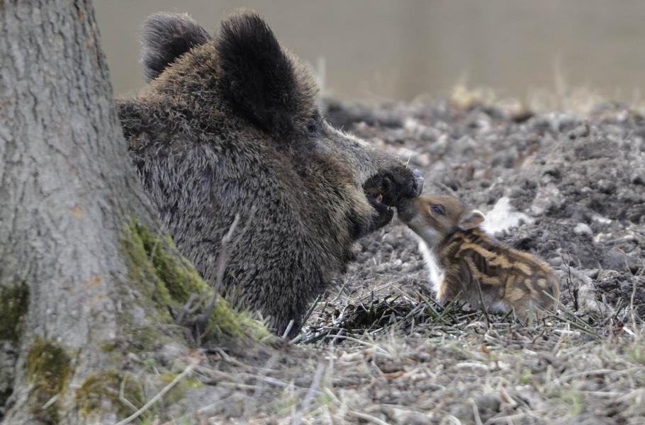 Koncem února jsou bachyně s mláďaty na určitou dobu vypuzeny ze stáda. Selátka „v pyžamu“ jsou sice nádherná, ale musíte dávat pozor, aby se některé při hře nezatoulalo příliš blízko k vám. V případě, že by se leklo a vydalo varovný signál, bachyně by se mohla rozzuřit a ležící člověk má pak malou šanci uniknout.