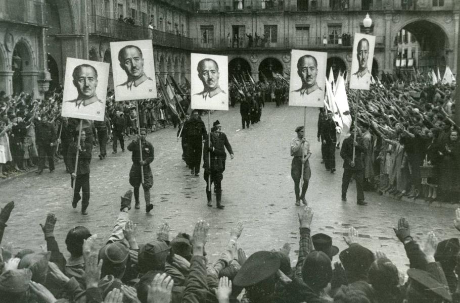 Kromě toho jejich silně protináboženské postoje vedly řadu lidí ke starosvětskému Frankovi. Ten se opíral o konzervativní, nacionalistické hodnoty a v roce 1937 přijal 26 z původních 27 bodů fašistických falangistů z roku 1934, které se měly stát prozatímní doktrínou jeho režimu. Také obnovil původní monarchistickou hymnu La Marcha Real – Královský pochod. Proti tomu však protestovalo mnoho radikálních fašistů, kteří odsuzovali španělskou monarchii.