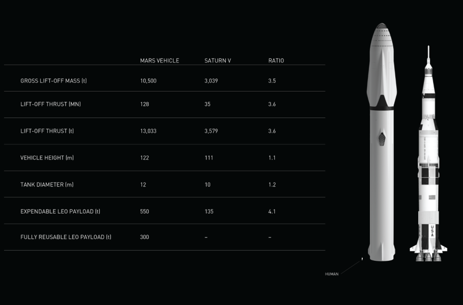 Lidské kolonizátory má na Mars dopravit nový typ supervýkonné rakety Interplanetary Transport Systém (ITS). První prototyp rakety by mohl být hotový do čtyř let. Raketa ITS má být osazena 42 motory typu Raptor, jejichž prototyp nedávno prošel úspěšnou zkouškou. Motory mají raketě dodat zcela bezprecedentní nosnost 550 tun (pro srovnání nosnost rakety Saturn V je 140 tun, nosnost rakety Delta IV Heavy 26 tun).