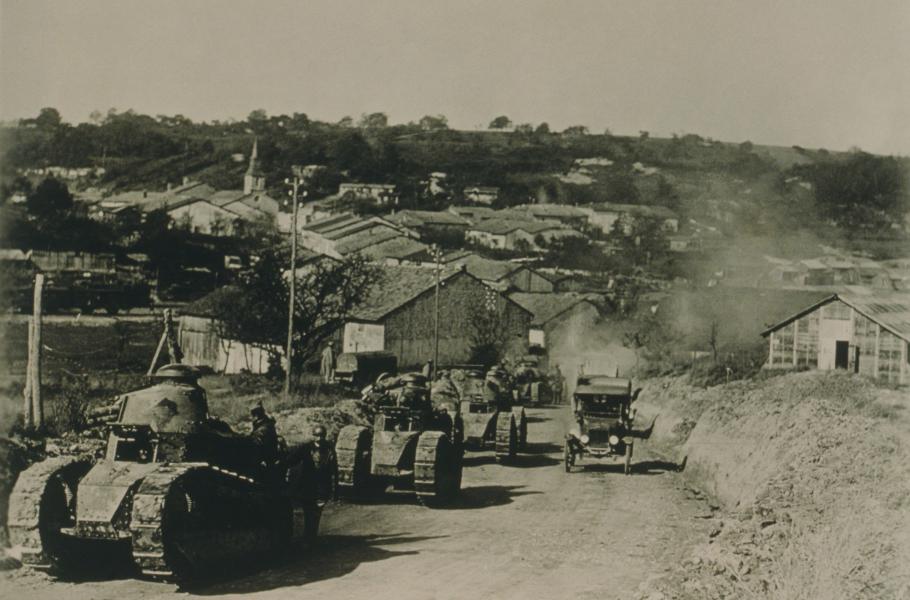Francouzští vojáci tak po téměř čtyřech letech konečně opustili zákopy a tlačili nepřítele k německým hranicím. Byla to ale už docela jiná armáda než v roce 1914 – místo nadšených branců v křiklavě červených nohavicích pochodujících do boje v sevřených řadách se přes zákopy valily stovky tanků, které teprve následovala pěchota. Válčení v závěru první světové války dostalo podobu, kterou pak bude mít v té druhé – mobilní a mechanizovanou.