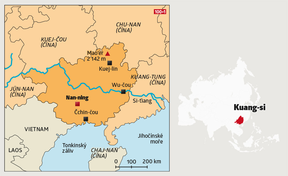 Region Kuang-si se rozkládá v rozsáhlé krasové oblasti, a tamní krajina je tudíž extrémně členitá. Nabízí přitom nejen nádherné výhledy na nesčetné vrcholky, ale také rekordní jeskyně, fotogenická terasovitá políčka či tepající velkoměsta.