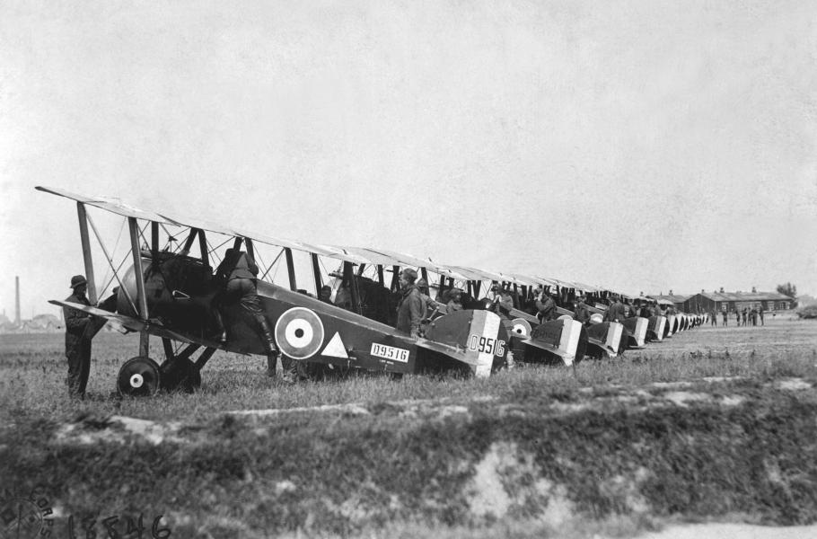 Piloti a mechanici 148. americké letecké perutě se připravují na nálet na německé zákopy a města. Petite-Sythe, Francie, 16. srpna 1918. (foto: Shutterstock)
