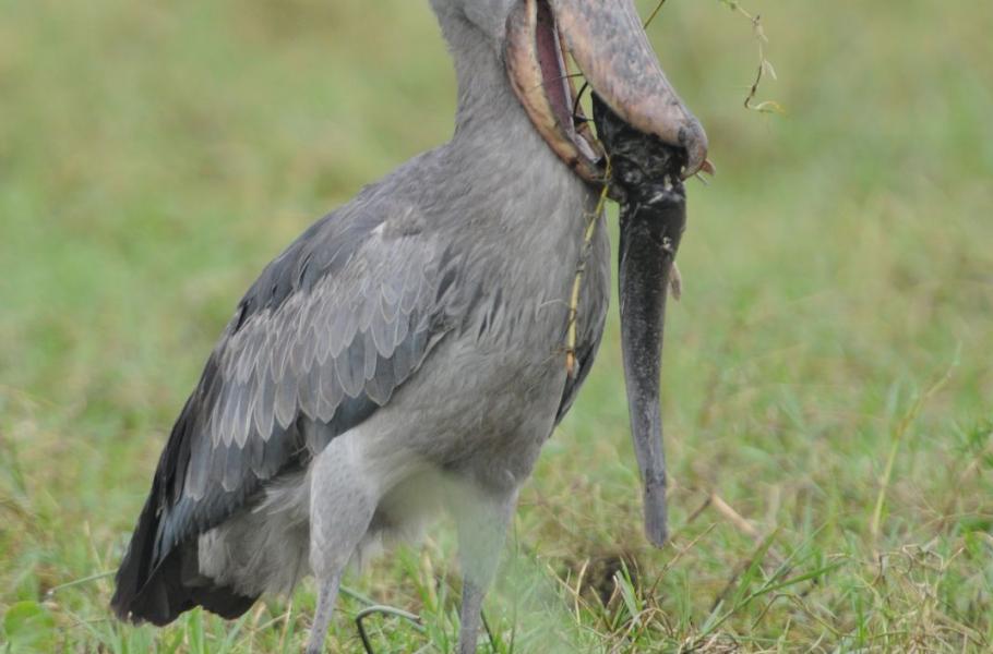 Nejdostupnějším místem výskytu je močál Mabamba v blízkosti hlavního města Kampaly. My jsme však zamířili do vzdálenějších končin – do národního parku Toro-Semliki blízko Albertova jezera u hranic s Demokratickou republikou Kongo. Také jsme zkusili štěstí v národním parku Murchison Falls, kde nám ranní projížďka do delty Viktoriina Nilu přichystala příjemné překvapení v podobě tohoto nádherného velikána s právě ulovenou kořistí. Přitom v obou těchto parcích žije podle informací od místních průvodců jen 8–10 člunozobců.