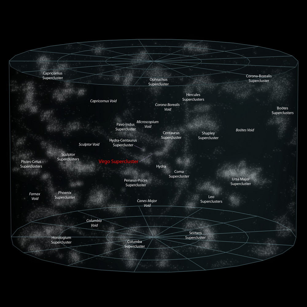Vesmír se na první pohled může zdát homogenní a izotropní, stačí ale změnit úhel pohledu a naskytne se nám obraz kosmické sítě tvořené vlákny galaxií a kup, mezi nimiž se nacházejí rozlehlé téměř prázdné oblasti.