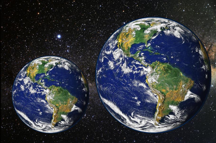 Kdyby byla Země dvakrát větší, byla by při stejné hustotě osmkrát hmotnější a přitažlivá síla na jejím povrchu by také vzrostla dvakrát. Znamenalo by to, že by byl rovněž proporčně větší atmosférický tlak na povrchu. Zvýšený tlak by ovšem nejspíš vedl k výraznějšímu skleníkovému efektu na počátku vývoje planety, a pak by zůstávalo otázkou, zda by vůbec mohla na povrchu zkondenzovat voda a vytvořit oceány. Pokud by k tomu nedošlo, nevyvinul by se na Zemi život.