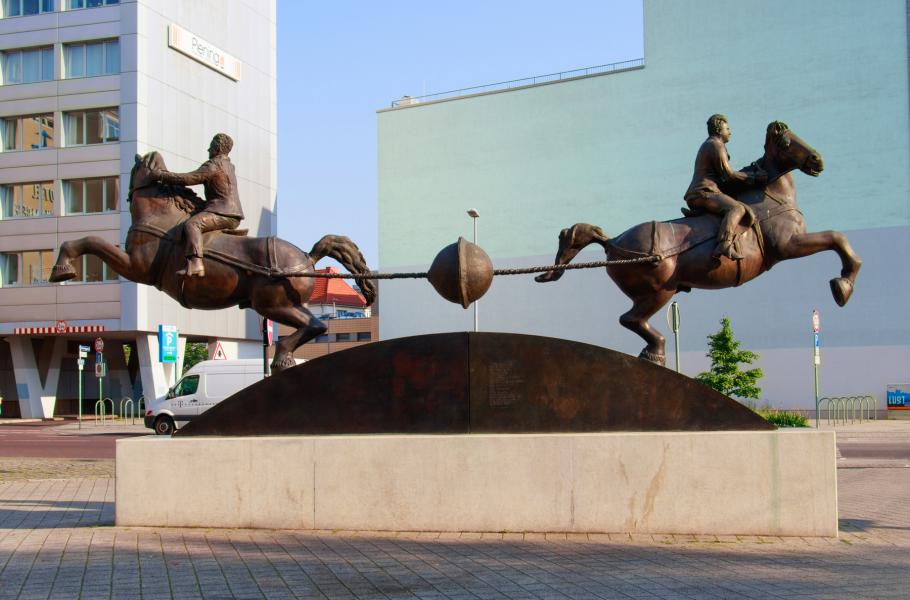 Význam experimentu dnes v Magdeburku připomíná socha profesora Thomase Virniche. (foto: Shutterstock)