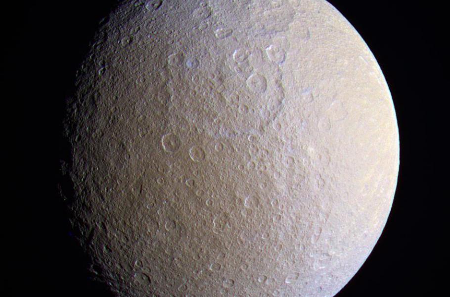 Ze soustavy Saturnových měsíců stojí za zmínku i Dione a Rhea, ledové objekty kroužící nad povrchem planety jako 4. a 5. v pořadí. Kolem rodného tělesa obíhají ve vzdálenosti 377 415 km, respektive 527 068 km a jejich průměry dosahují 1 123 km a 1 528 km. Oba satelity se přitom navzájem podobají nejen velikostí, ale také vzhledem. Dione pokrývá spousta kráterů, přičemž některé měří v průměru i více než 100 km. Na jejím povrchu rozeznáme rovněž praskliny – vypadají jako „tygří škrábance“ na Enceladu, z nichž uniká vodní pára v podobě gejzírů. Část vody překonává gravitaci zmíněného satelitu a putuje do prstence E, odkud se zase ledové částice dostávají k Dione a ulpívají na ní.