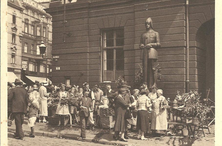 Socha vznikla přičiněním nadaného Josefa Müllnera již roku 1914 z lipového dřeva a původně stála u Schwarzenberského pomníku. Je nasnadě, že první hřebíky zarážela do masivu rytíře společenská elita, například arcivévoda Ludvík Salvator s velvyslanci spojeneckých zemí. Z celkového množství 500 000 nachystaných hřebíků jich za první dva dny akce „padlo“ 1 400 kusů, jenže zájem o dobročinnost postupně upadal, možná i proto, že každý vídeňský okres získal svůj vlastní dobročinný objekt.
