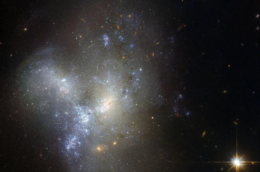 Obraz Hubbleova vesmírného teleskopu zachycuje zvláštní galaxii známou jako NGC 1487, ležící asi 30 milionů světelných let od Země v jižním souhvězdí Eridanu. Proč zvláštní? Spíše než na vesmírný objekt bychom se na NGC 1487 měli dívat jako na vesmírnou událost. Galaxie NGC 1487 názorně demonstruje dokonalé splynutí dvou (či více) menších útvarů v jeden. Po nějakém čase je již takřka nemožné rozeznat, které části pochází jaké galaxie a kolik jich vlastně na počátku bylo. Vědci předpokládají, že NGC 1487 v Eridanu je shlukem několika trpasličích galaxií v jednu.