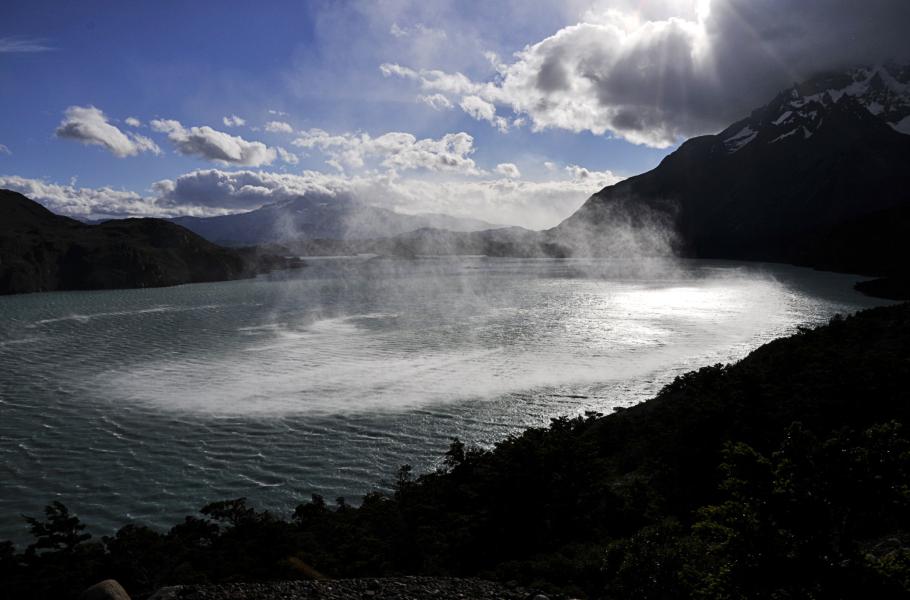 Cesta směřující do argentinské osady El Chaltén, která má jeden a půl tisíce obyvatel, je rovná jako pravítko. Řidič autobusu má přesto plné ruce práce, aby udržel vůz na své straně cesty. Člověk ani nemusí vystupovat ven, aby mu bylo jasné proč. Vozidlo se houpe pod náporem pověstných patagonských větrů, nezřídka přesahujících rychlost sto kilometrů za hodinu. Jsou součástí zdejšího každodenního života, protože nad relativně úzkým pásem země, vysunutém do oceánu jižněji než jakákoliv jiná pevnina s výjimkou Antarktidy, je nemá co zastavit. Přicházejí převážně od západu a na nebi vytvářejí typické čočkovité mraky Altocumulus lenticularis. Poryvy jsou někdy tak silné, že z hladin jezer zvedají vodní tříšť do výšky několika metrů a když se díváte na vodopády, podle kapek strhávaných větrem můžete mít občas dojem, že padají vzhůru.