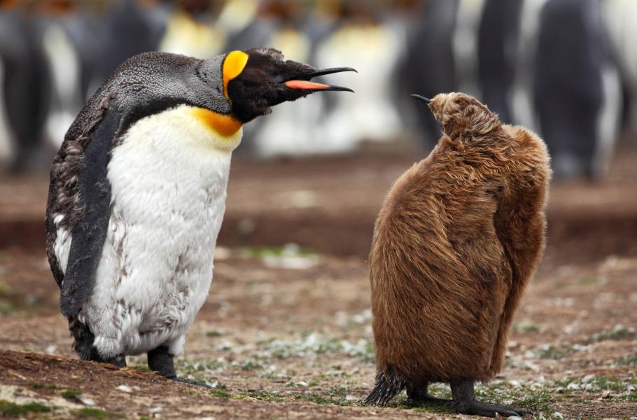 O tom, jak je mladý tučňák závislý na svých rodičích, jsme se přesvědčili na vlastní oči. V době naší lednové návštěvy už byla v kolonii pouze dvě mláďata s hnědým prachovým peřím. Většina ostatních se této pokrývky zbavila již během prosince. To bylo podezřelé. Když jsem se těmto mláďatům věnoval, zjistil jsem, že pravděpodobně nemají rodiče. Dožadovala se totiž potravy vždy u jiných tučňáků a byla velmi důrazně odstrkována. Malí sirotci byli velmi často napadáni i mláďaty, u jejichž rodičů škemrali o potravu. Bylo zřejmé, že jejich vlastní rodiče zahynuli – pravděpodobně v moři, kde se mohli stát potravou lachtanů. Takovýto sirotek je odsouzen k smrti hladem, nikdo z jiných tučňáků mu nepomůže. Hnědé chundelaté mládě jsme v den našeho odjezdu našli mrtvé. I takový je život v kolonii.