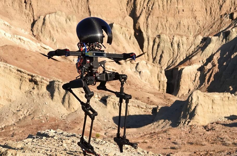 Vědci z Caltechu sestrojili dvounohého robota, který při pohybu kombinuje chůzi s létáním. Zvládá díky tomu chůzi po laně i jízdu na skateboardu