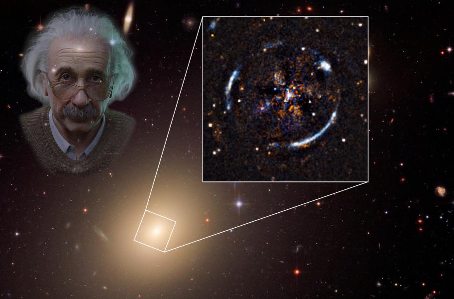 Členové týmů však byli schopni prověřit ještě další aspekt gravitačního pole této galaxie. S pomocí Hubbleova kosmického teleskopu pozorovali takzvaný Einsteinův prsten, útvar, který vzniká ohybem paprsků světla vzdálených galaxií ležících z našeho pohledu v pozadí za ESO 325-G004. Pozorování prstenu astronomům umožnilo změřit, jak výrazně je narušen chod paprsků, a tedy jakým způsobem galaxie ESO 325-G004 díky velké koncentraci hmoty zakřivuje okolní prostoročas.