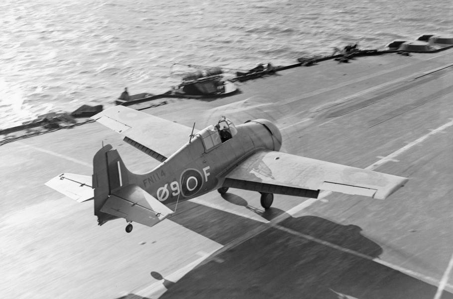 Spolehlivou ochranu konvojů zajistily až eskortní letadlové lodě, z nichž vzlétaly mimo jiné stíhací letouny Grumman F4F Wildcat neboli Martlet. (foto: Wikimedia Commons, Imperial War Museums, IWM Non-Commercial Licence)