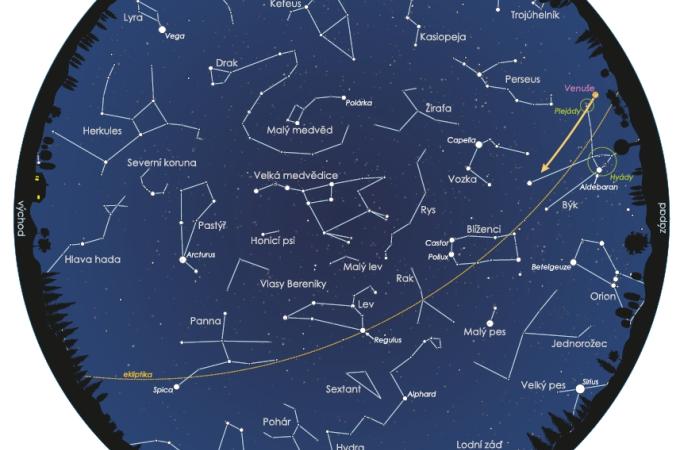 Noční obloha v dubnu: Venuše, sedm sester a superúplněk