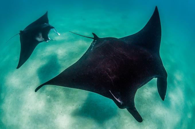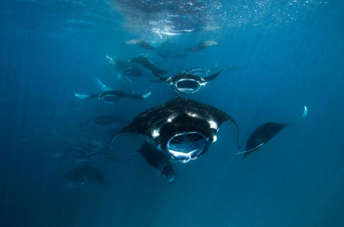 „Létající“ rejnoci manty: Ďábelský motýl modrých vod