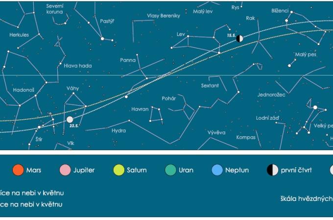 Noční obloha v květnu: Meteorický roj Akvarid a velkolepá stálice