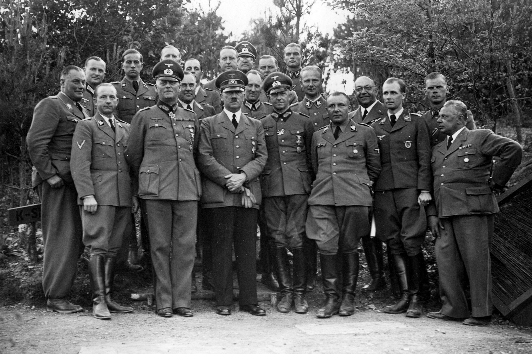 Adolf Hitler se členy svého štábu ve Vlčím doupěti někdy v letech 1940–1942. (foto: Wikimedia Commons, Bundesarchiv, Heinrich Hoffmann, CC-BY-SA 3.0)