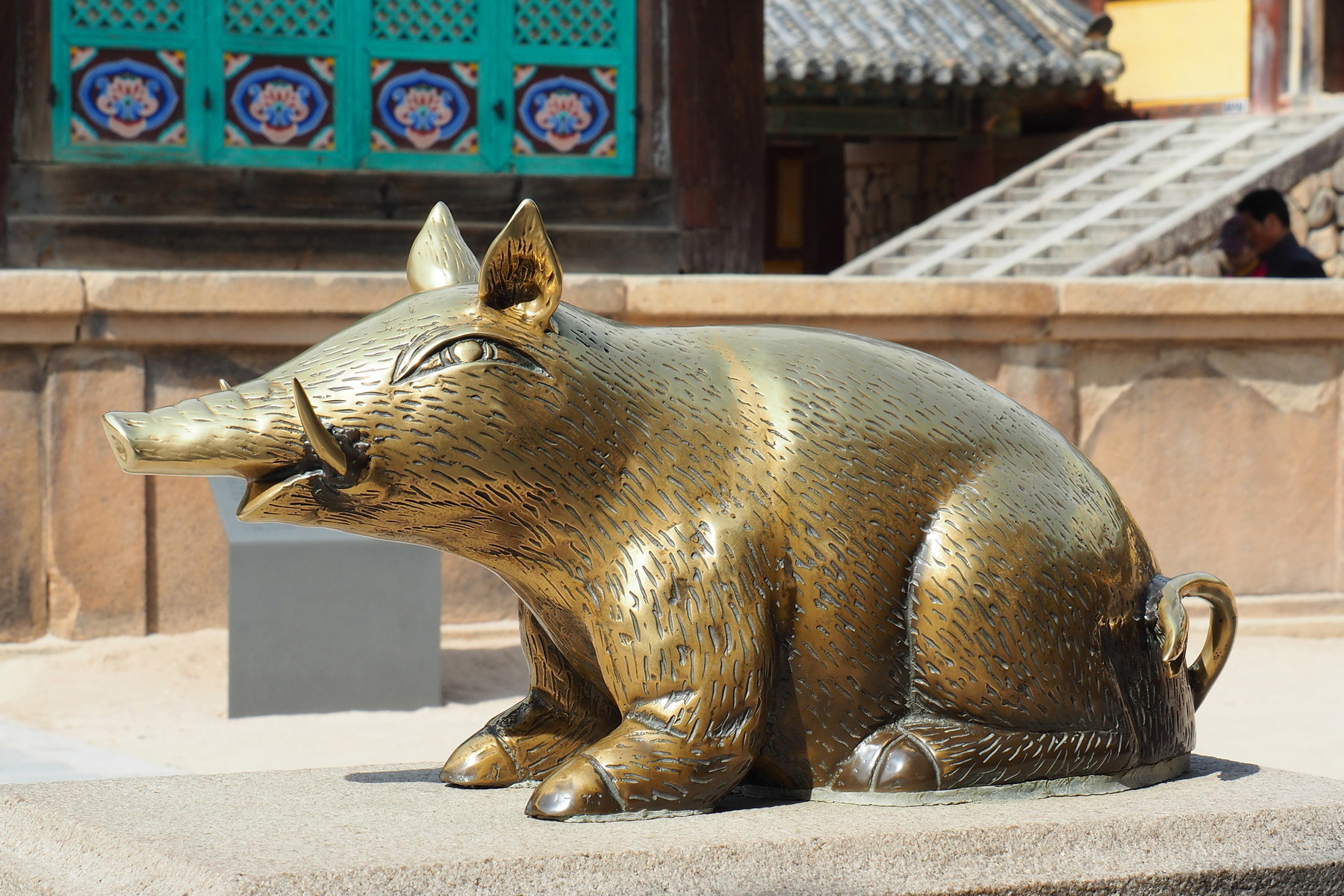 Bronzové prasátko na hlavním nádvoří chrámu. V korejské kultuře symbolizuje bohatství a přízeň osudu. (foto: Shutterstock)