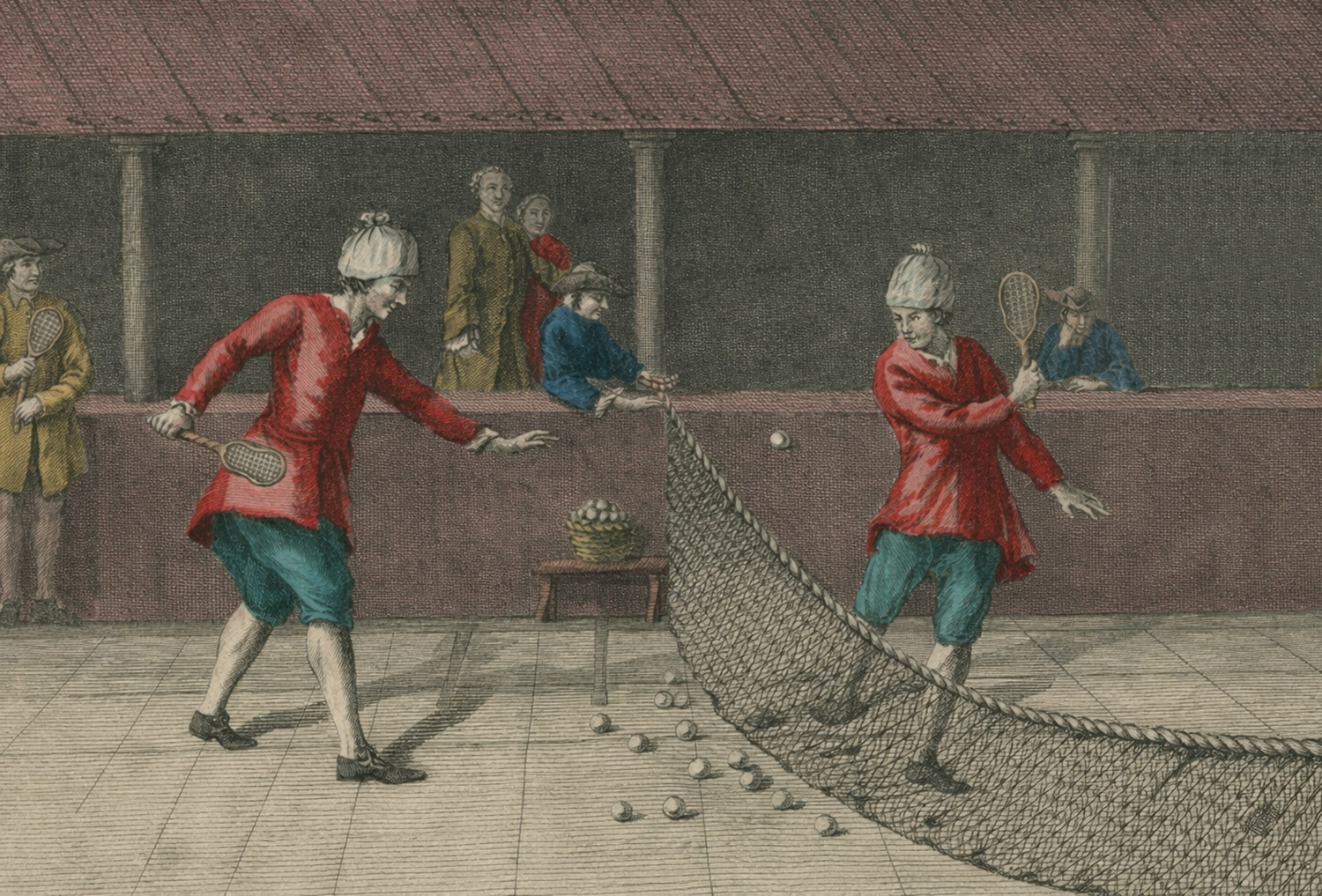 Hra s detailem sítě na malbě z roku 1757. Do vytvoření oficiálních pravidel zbývalo ještě sto dvacet let. (ilustrace: Wikimedia Commons, Voderf, PDM 1.0)