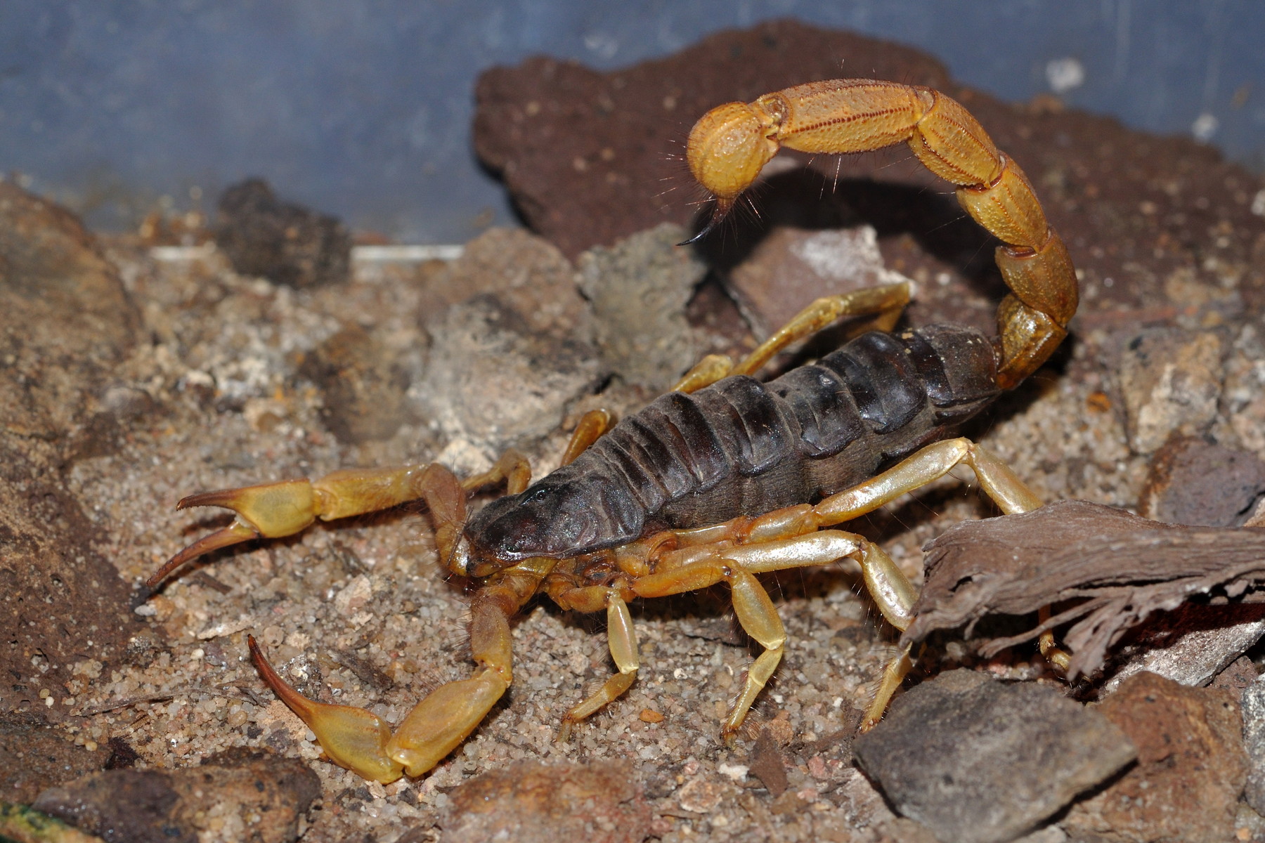 Až 80 % všech smrtelných případů bodnutí štírem a 95 % všech smrtelných případů v severní Africe má na svědomí Štír tlustorepý (Androctonus australis). (foto: Wikimedia Commons, Quartl, CC BY-SA 4.0)