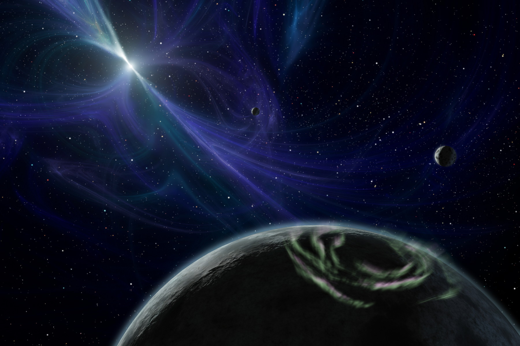 Astronomové hledají skryté spolucestující planet i v extrémních systémech pulzarů. (ilustrace: NASA/JPL-Caltech, CC BY-SA 4.0)