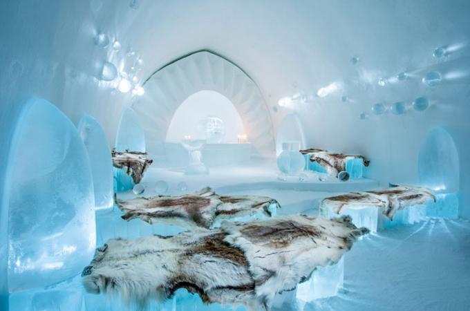 Hotel postavený celý z ledu nabízí horkou koupel, saunu i vlastní kapli