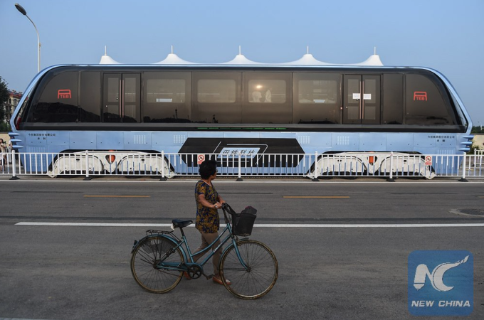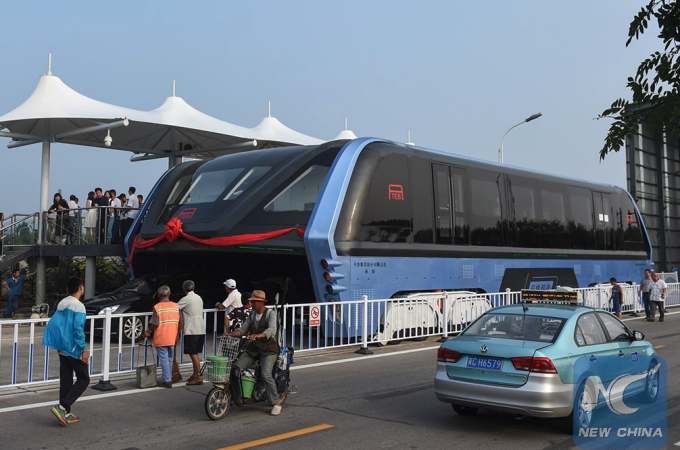 Městská doprava budoucnosti: „Rozkročený autobus“ vyrazil na zkušební jízdu