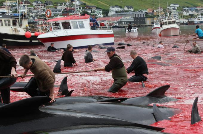 Malá mořská víla zbrocená krví: Drsný protest ochránců velryb