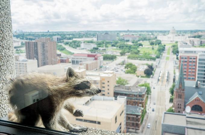 Šplhající medvídek: Mýval zvládl výstup na pětadvacetipatrový mrakodrap