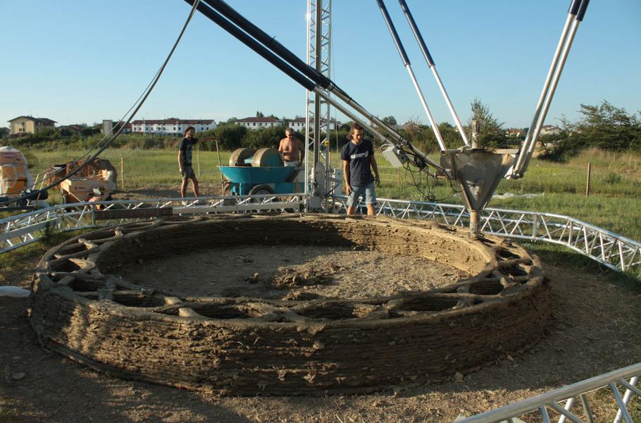 Italové teď pořádají workshop pro lokální stavaře v technologické vesničce Shamballa, která se nalézá v italské provincii Ravenna. Autoři 3D tiskárny BigDelta tam testují své zařízení přímo v terénu.