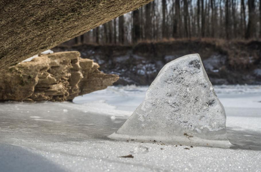 Rozlámané kry a vzduchové bubliny pod slabým ledem anebo vypouklý a zaoblený led typu hodinového sklíčka, to vše má na svědomí kolísání hladiny a výkyvy mrazů. Nejvíc se projeví při okraji řeky, v meandrech hlavně tam, kde řeka nanáší, tedy kolem písečných či štěrkových pláží. Cesta ledem podél břehu skrz pole rozbitých ker tak může být zvlášť ošemetná, ale zato pro vnímavé oko nejpřitažlivější.