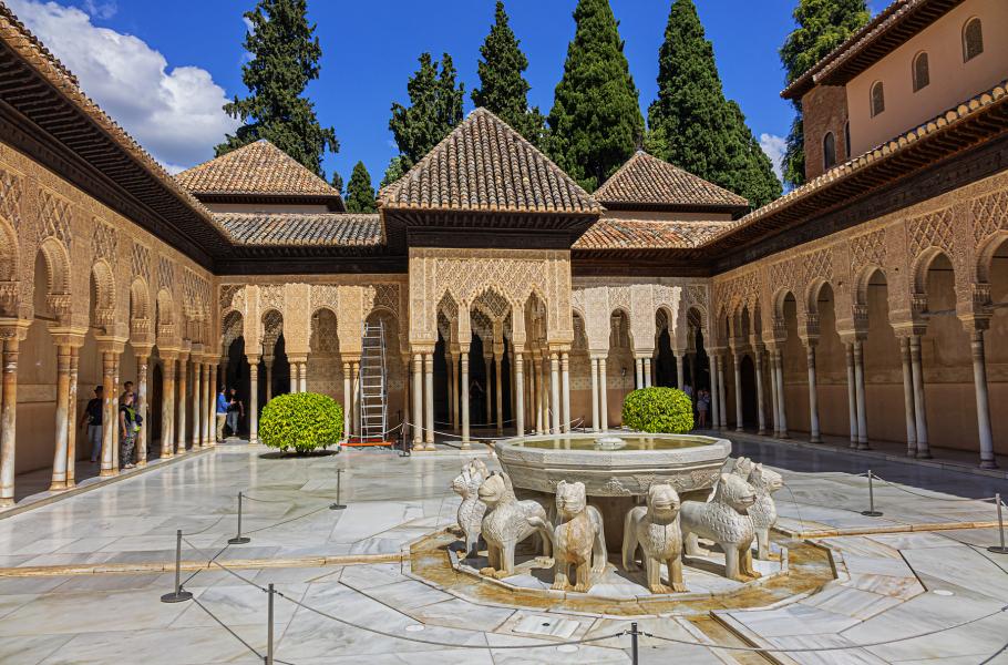 Lví palác, Palacio de los Leones, představuje vrchol maurského umění. Obzvlášť v jedné z jeho částí, tzv. Královském paláci, si budete připadat jako v pohádce z Tisíce a jedné noci. Neopakovatelný zážitek pak nabízí Lví dvůr, s dosud funkční kašnou symbolicky nesenou dvanácti šelmami – zkamenělá, ale současně živoucí oáza.