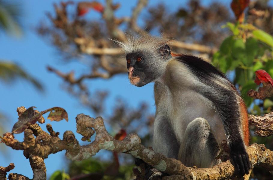 Gueréza červená zanzibarská (Piliocolobus kirkii) patří mezi nejvzácnější primáty světa. I když jsou tyto na pohled atraktivní opice chráněny zákonem, jejich počet neustále klesá a v současnosti se odhaduje na posledních 1 400 jedinců. Jediným místem, kde se guerézy červené volně pohybují, je Unguja, hlavní ostrov souostroví Zanzibar. Žijí tu v tlupách po 30–50 kusech, které jsou zpravidla tvořeny maximálně čtyřmi samci a převažující většinou samic a mláďat. Samci váží 9–13 kilogramů a narůstají do zhruba 45–72 centimetrů. Samice jsou v průměru o 2–3 kila lehčí, ale prakticky stejně veliké. Stejně jako všem guerézám, i těm zanzibarským chybí palec. Podle tohoto výrazného rysu vznikl i slovní základ latinského názvu – colobus totiž znamená zakrnělý, nebo také zmrzačený.
